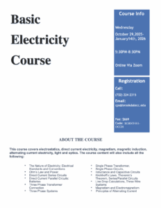 Fall 2025 Basic Electricity Course – NEW DATES!!